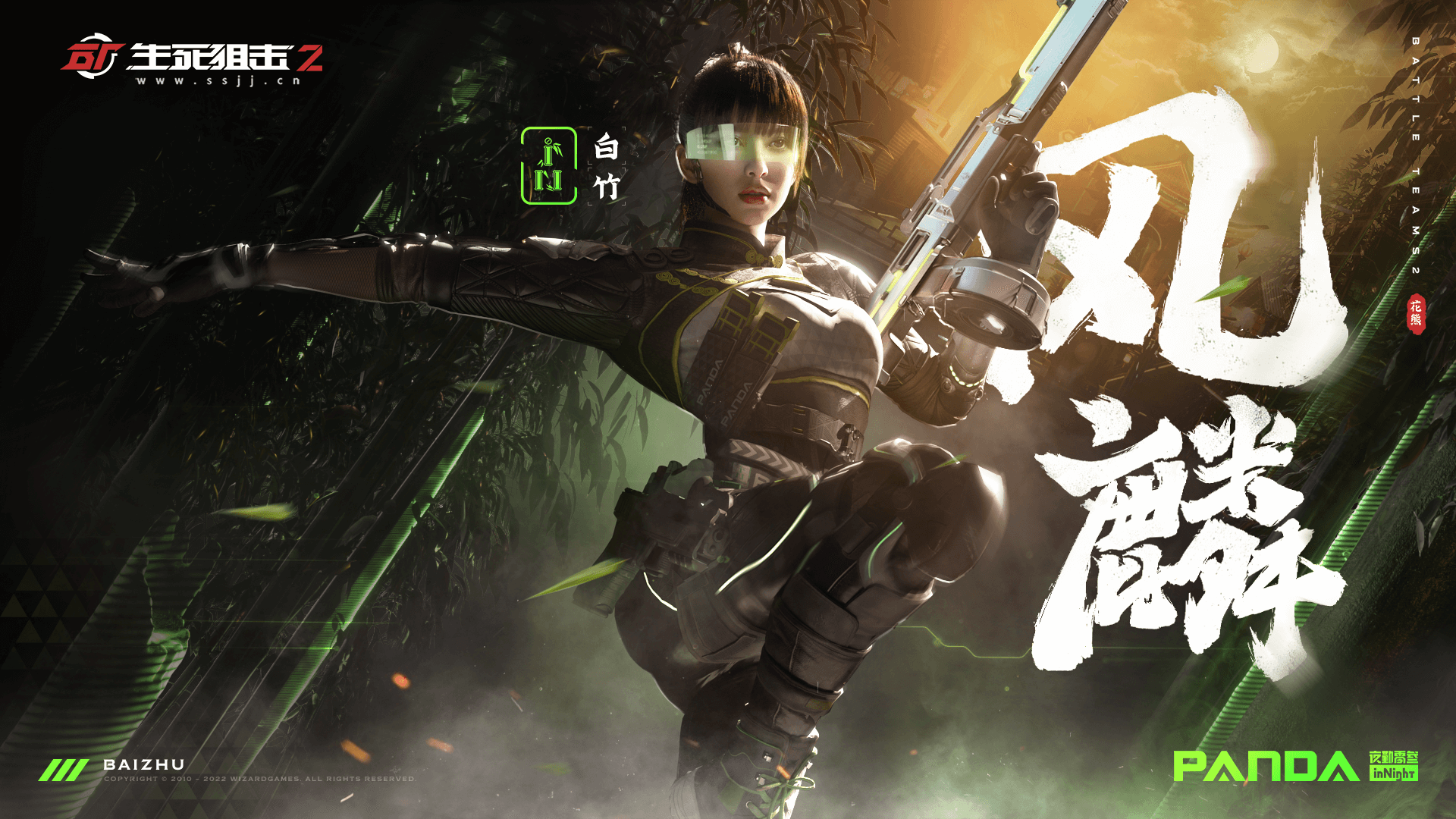 重置风格后上线的首位女角色,是热辣强悍的川渝妹子白竹。她曾是专业的射击运动员,目前为某部队小组机枪手,武力值爆表。战术套装搭配独有的熊猫和竹元素,造型干练利落侠气翩翩,再加上专属武器QJB95-风麟,极具国风机械感。