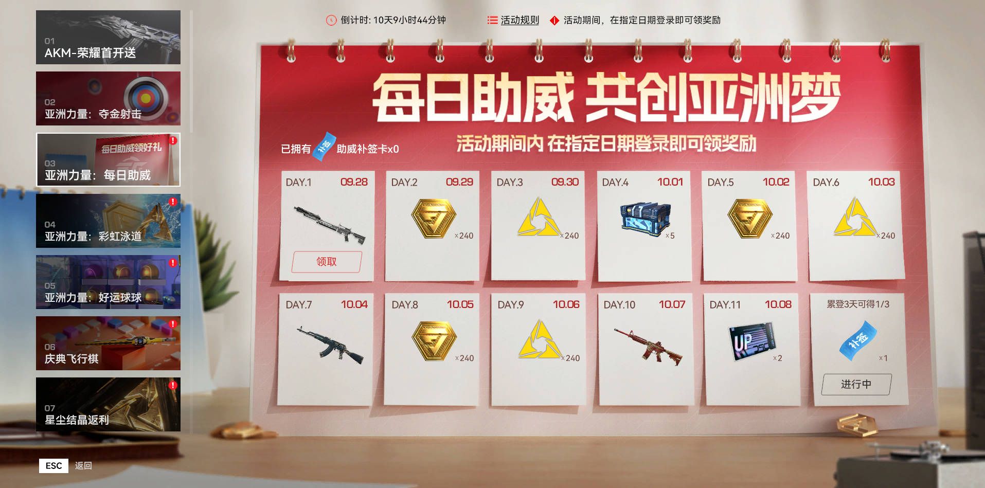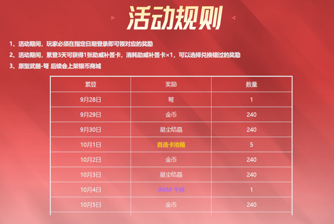 活动期间登录游戏可参与『亚洲力量:每日助威』,领取「复合弩」、「M4A1莫邪」、金币、星尘结晶与军备箱等诸多好礼。